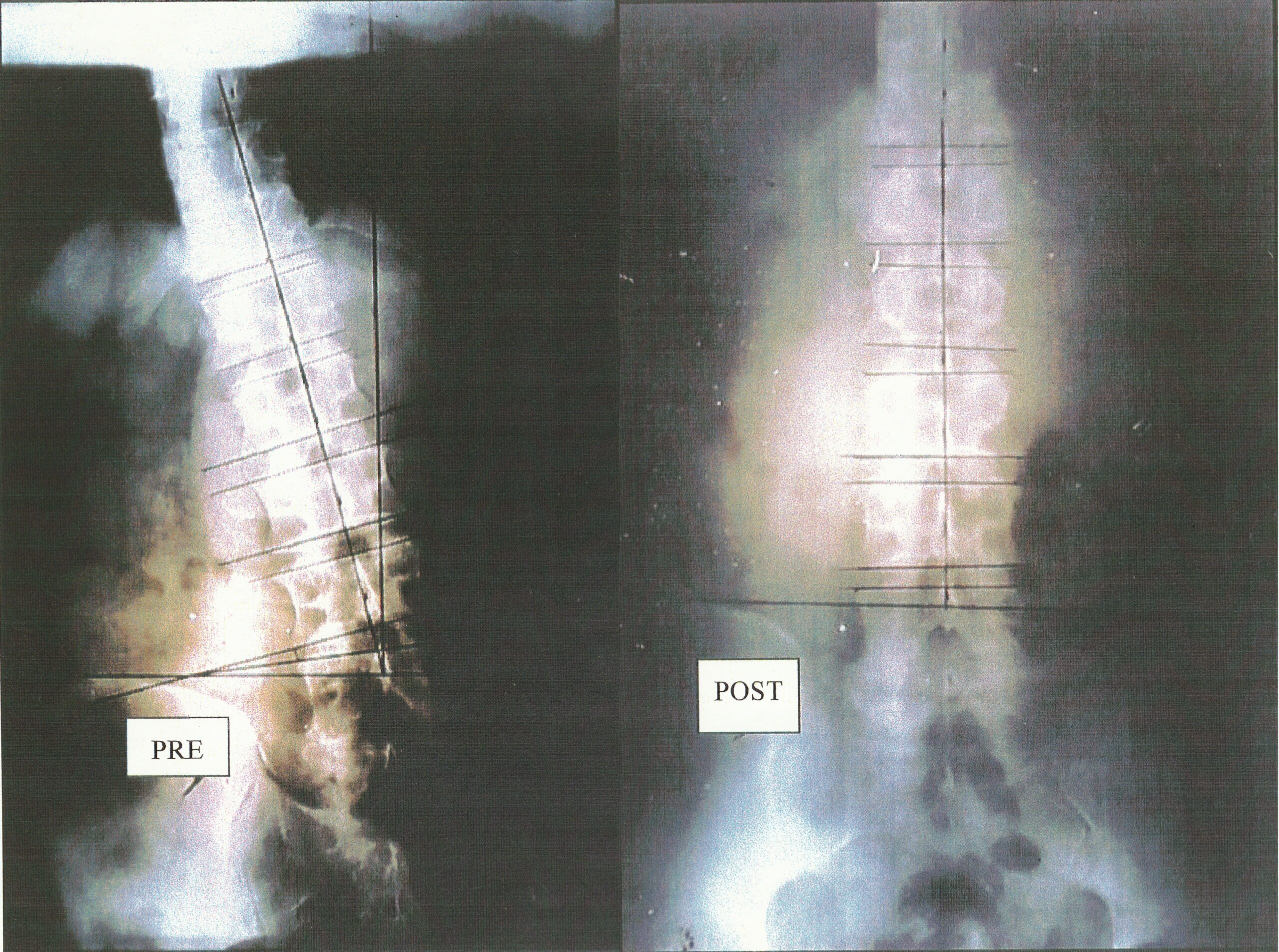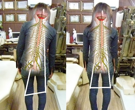 第一頚椎(アトラス)を正常な位置に戻すと、重心が変わり腰椎は正しい配列を取り戻します。